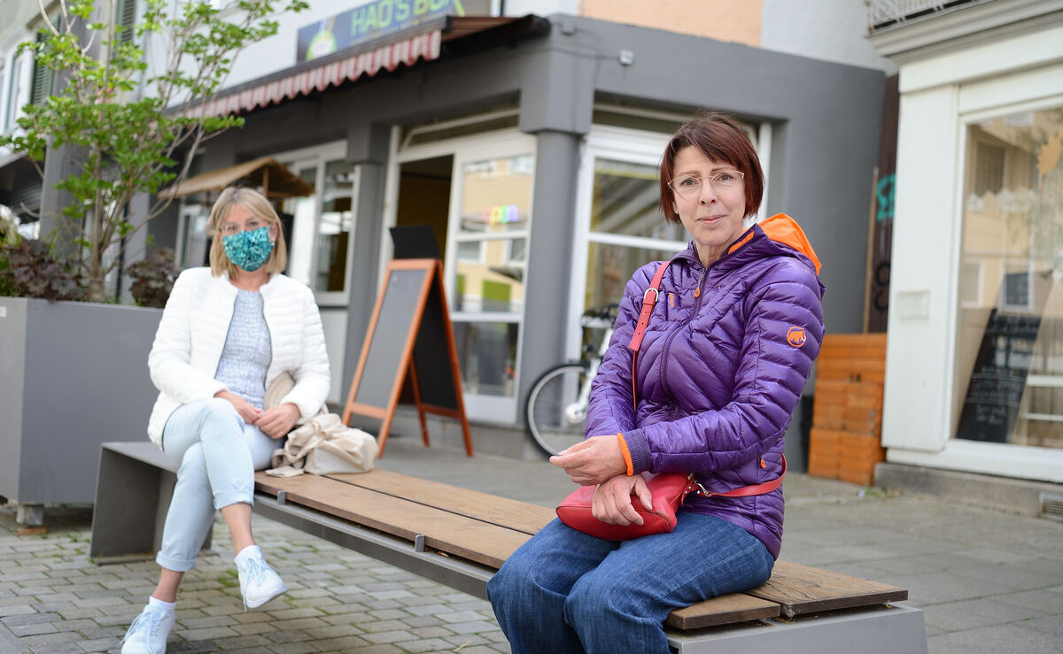 Für die beiden in der Altenhilfe tätigen Kolleginnen Bärbel Sättler (links) und Renate Titz-Brenke ist Abstandhalten das A und O. Beide finden die Maskenpflicht »richtig und wichtig«. FOTOS: PIETH