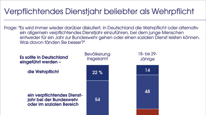 Soll Deutschland die Wehrpflicht angesichts der geopolitischen Lage wieder einführen? Die Bundesbürger zeigen sich offen dafür, bevorzugen aber eine Dienstpflicht inklusive sozialem Jahr.