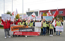 »Armutslöhne beim ostdeutschen Markenführer müssen endlich der Vergangenheit angehören«, teilte Olaf Klenke von der Gewerkschaft Nahrung-Genuss-Gaststätten (NGG) am Donnerstag mit. Die Gewerkschaft fordert zwei Euro mehr Lohn pro Stunde bis Ende 2023. Aktuell haben demnach viele Beschäftigte einen Stundenlohn von knapp über zwölf Euro. Seit rund zwei Wochen streiken Mitarbeiterinnen und Mitarbeiter des Nudelherstellers in Riesa. Die Aktion in Trochtelfingen stand unter dem Motto »Wir machen rüber« und bezog sich auf einen Spruch, mit dem seinerzeit viele DDR-Bürger ihre Absicht zu einer Übersiedlung in den Westen bekundeten.