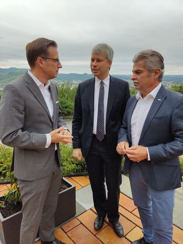CDU-Bundesvorstandsmitglied Steffen Bilger (Mitte) sowie Rainer Knauer (rechts) und Robin Morgenstern (links) von den Familienunternehmern.