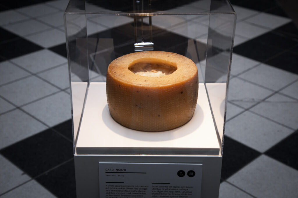Ein Pecorino-Schafskäse aus Sardinien wird mit Eiern der Käsefliege Piophila casei belegt, aus denen Maden schlüpfen, die den Käse durch Verdauung umwandeln, so dass er eine cremige Konsistenz bekommt und eine Flüssigkeit absondert, die Lacrima (Träne) genannt wird. Die Maden werden mitgegessen. Beim Essen soll man die Augen schließen, weil die Maden hochspringen und einem in die Augen hüpfen können. Seite 2005 sind die industrielle Produktion und der Vertrieb von Casu Marzu nach EU-Lebensmittelrecht verboten.