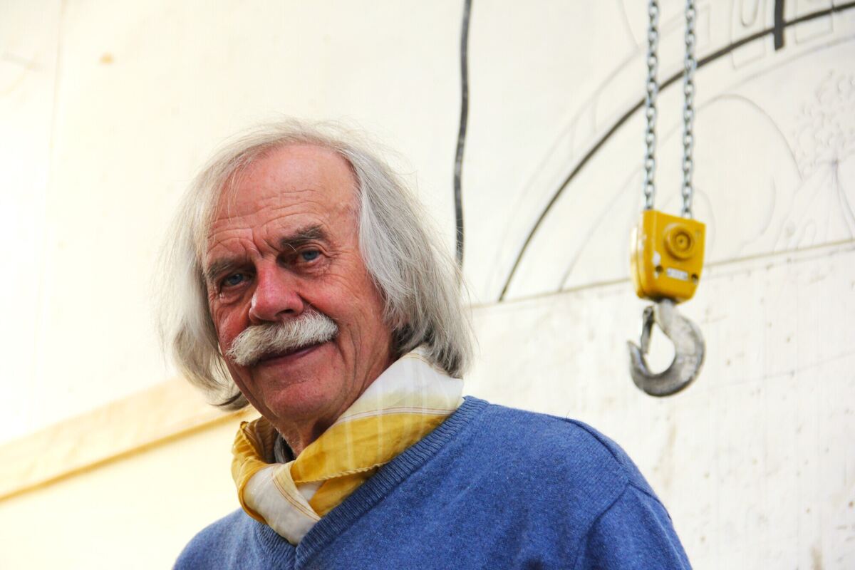 Peter Lenk, Bildhauer und Kritiker von Stuttgart 21. Er führt augenzwinkernd durch den Film »Das trojanische Pferd«. FOTO: FRICKER