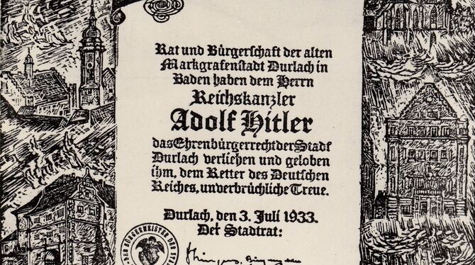 Die Ehrenurkunde Hitlers trägt die Inventarnummer U I 59 im Pfinzgaumuseum.