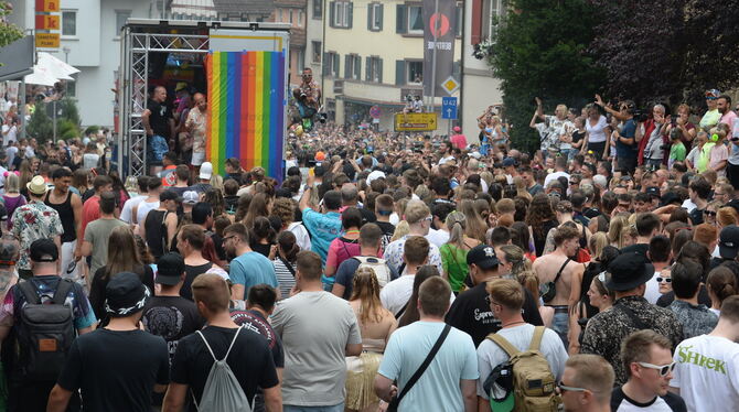 Gestartet wurde am Nachmittag am Ortsrand Richtung Horb, gute anderthalb Stunden später kam der Konvoi mit der tanzenden Masse auf dem ausverkauften Festivalgelände an. An der zwei Kilometer langen Strecke hatten sich die Einwohner die besten Plätze gesichert. Wummernde Bässe stören selbst die Ältesten des Dorfes nicht mehr. Sie sitzen im Gartenstuhl, um das Spektakel nicht zu versäumen. Das verwundert nicht, zumal Empfingen eine alte Fasnetshochburg ist, in der es seit Menschengedenken ein buntes Narrentreiben gibt. (GEA)