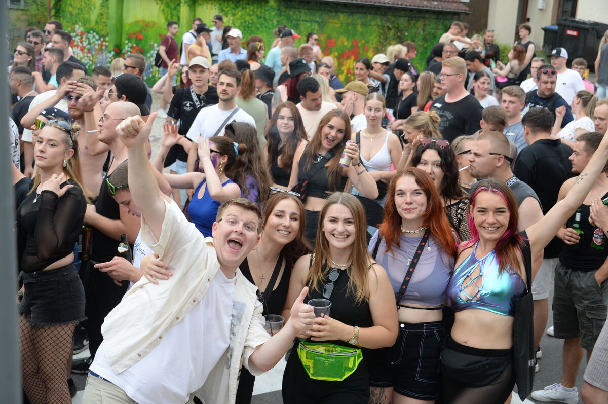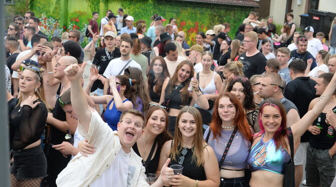 Jetzt am Samstag wurde die Gemeinde an der Autobahnausfahrt wieder zum Mekka der Raver aus ganz Süddeutschland und der Schweiz. Das kleine Fest ist zum generationsübergreifenden Großevent geworden. Rund 7.500 Besucher fluteten das Dorf. Mittlerweile tuckern sechs Trucks durch die Durchgangsstraße – und jede der 30.000 Watt lauten Anlagen lässt die Fensterscheiben vibrieren. Eine regelrechte Partymeile.