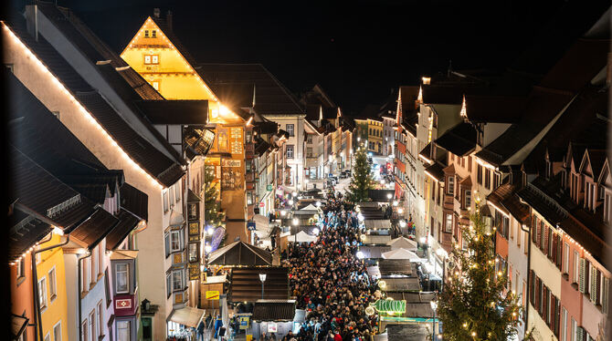 Rottweil lädt vom 4. bis zum 14. Dezember in die Fußgängerzone ein, eingerahmt wird das Treiben von der historischen Kulisse mit seinen bunten Hausfassaden und dem Schwarzen Tor. Öffnungszeiten: Montag bis Donnerstag von 12 bis 20 Uhr, Freitag von 12 bis 21 Uhr, Samstag von 10 bis 21 Uhr, Sonntag von 12 bis 20 Uhr