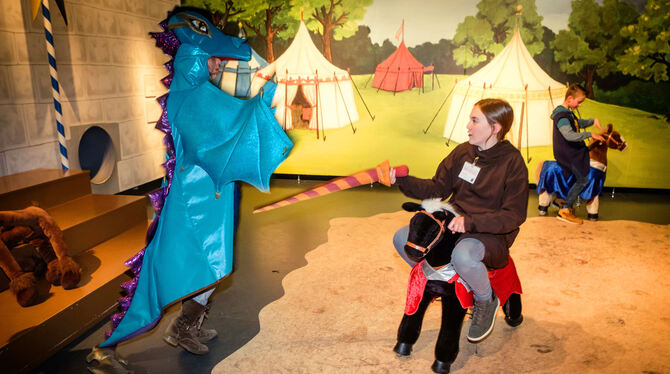 Ausstellungen, die Freude machen: Bei »Die Ritter - Leben auf der Burg« konnten Kinder den Kampf gegen Drachen proben. FOTO: LG