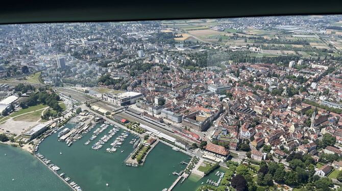 Flug mit dem Zeppelin in Konstanz: Zwei rein, zwei raus