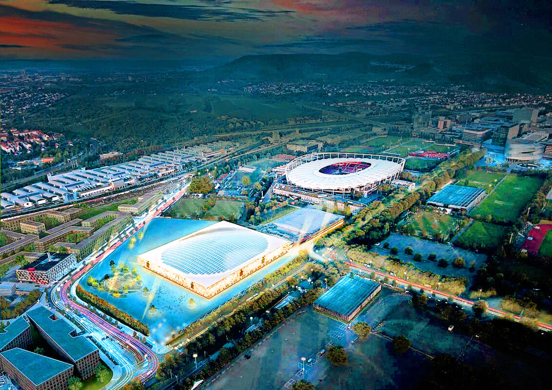 So könnte die neue Schleyerhalle aussehen. Sie soll Platz für bis zu 19 000 Zuschauern bieten. FOTO: OSA/ASP