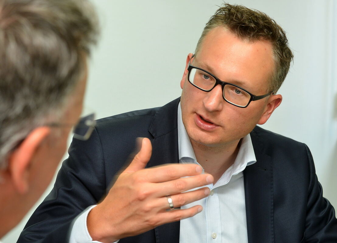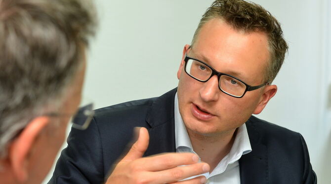 Andreas Schwarz sagt beim Redaktionsbesuch, dass auch Reutlingen vom Pakt zur Luftreinhaltung profitieren kann.