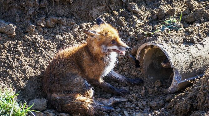 ALTENRIET. Zu einem nicht alltäglichen Einsatz wurde die Feuerwehr in Altenriet am Sonntagmittag gegen halb 11 in die Verlaengerung der Lindenstrasse gerufen. Ein Hund jagte einen Fuchs und verschwand in einem Abwasserrohr an einem Bachlauf.