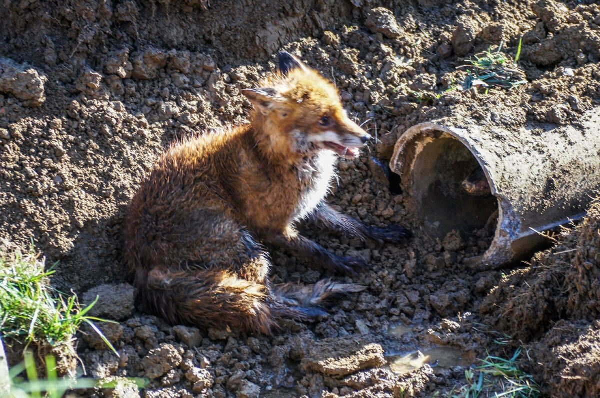 Kurz nach 16 Uhr waren der Hund und der Fuchs befreit, nachdem man die komplette Rohrleitung freigelegt hatte. Der Fuchs verschnaufte kurz, rannte dann aber weg, da der Hund ihn weiter jagte. (sdmg)