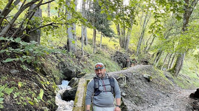 Wanderführer Guillaume mit Hund Rüna an der Bisse de Vex