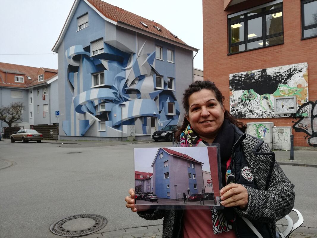 Vorher – nachher: Hausbesitzerin Sengül Kardelen zeigt ihr Haus, bevor der italienische Industriedesigner Manuel di Rita die Fassade zum Kunstwerk machte. FOTOS: GISEL