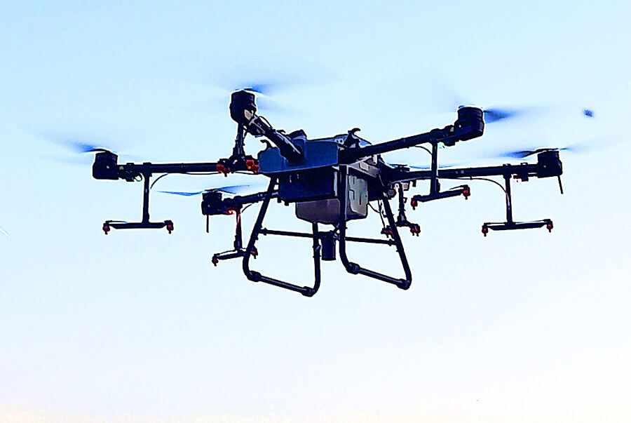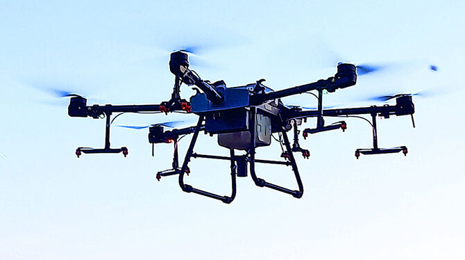 Eine Drohne im Einsatz in den Steil-lagen in Mühl- hausen.