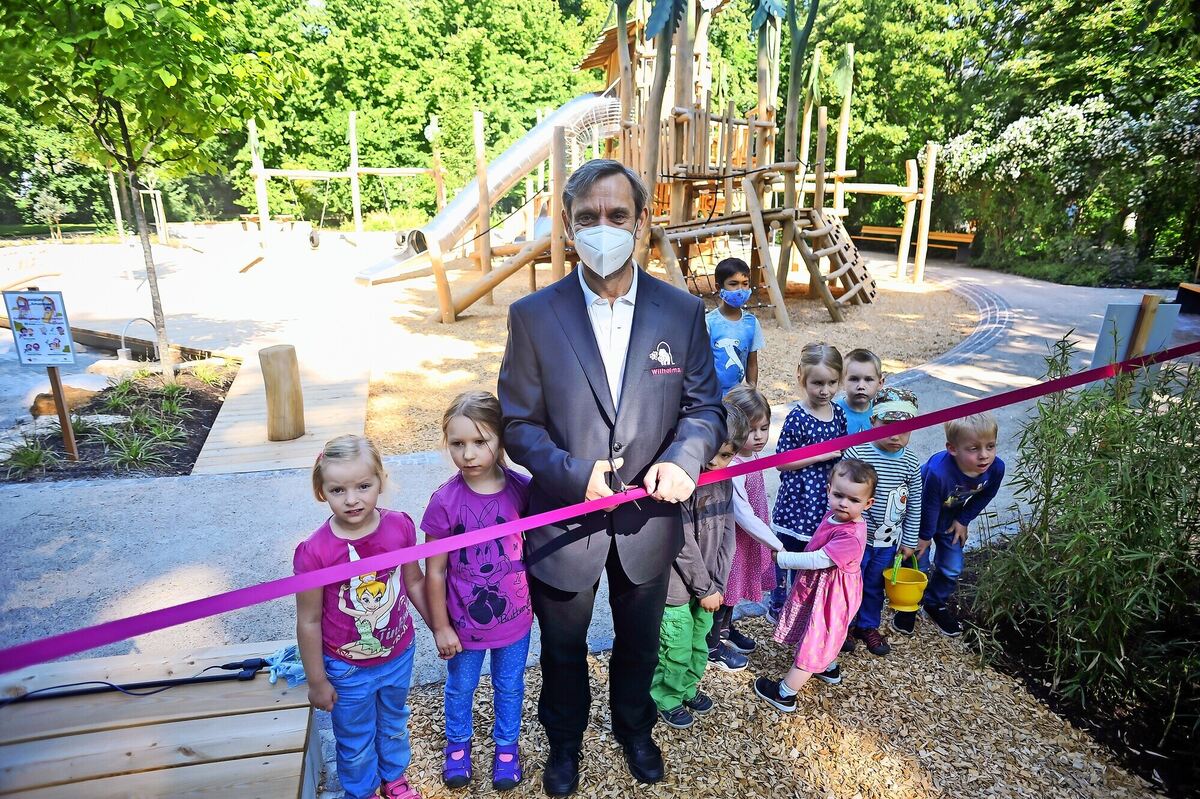 Der Planer und Landschaftsarchitekt Stefan Fromm aus Dettenhausen sowie die Chefs der Firma FHS Holztechnik aus Arnsberg bei Dortmund waren ebenfalls angereist. Aus Gründen der Nachhaltigkeit haben sie Holz von Robinien verwendet, das härteste Holz europäischer Herkunft und »annähernd so haltbar wie Tropenholz«, sagt Reinhard Gebhardt von FHS. Als Eröffnungsgeschenk brachte er ein Wipptierchen in Gestalt eines Krokodils mit. »Hier können die Kinder das, was sie auf dem Dschungelpfad im Amazonienhaus nebenan erlebt haben, als Entdecker durchspielen«, sagt Wilhelma-Chef Kölpin. Die Baukosten inklusive Planung liegen bei 375 000 Euro. Mit dem Ergebnis ist Kölpin zufrieden: »Was uns vorgestellt wurde, ist eingehalten worden.« Der Amazonien-Spielplatz ist einer von zwölf Stationen der Kinderturn-Welt, eines Bewegungsparcours, der in Kooperation mit der Kinderturnstiftung des Landes entstanden ist. (GEA)