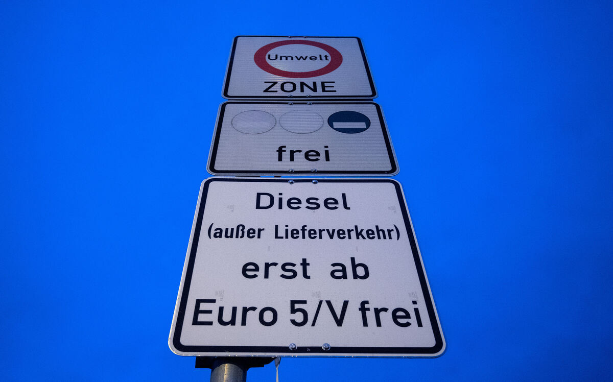 Ein Schild weist auf das Fahrverbot für Dieselfahrzeuge ab der Schadstoffklasse Euro 5 hin.