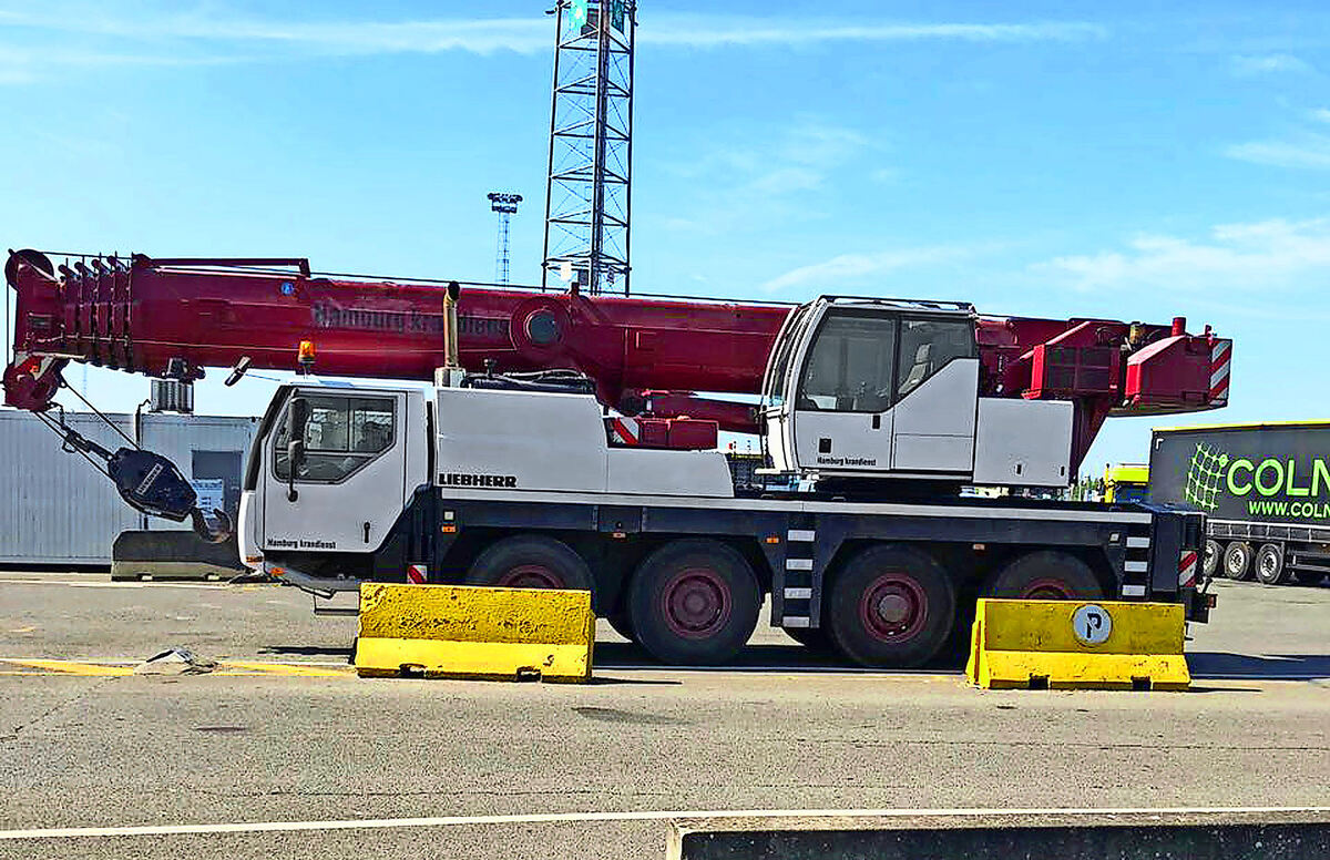 Umlackiert, aber eindeutig identifiziert: der gestohlene Paule-Kranwagen in Kairo. FOTO: FIRMA PAULE