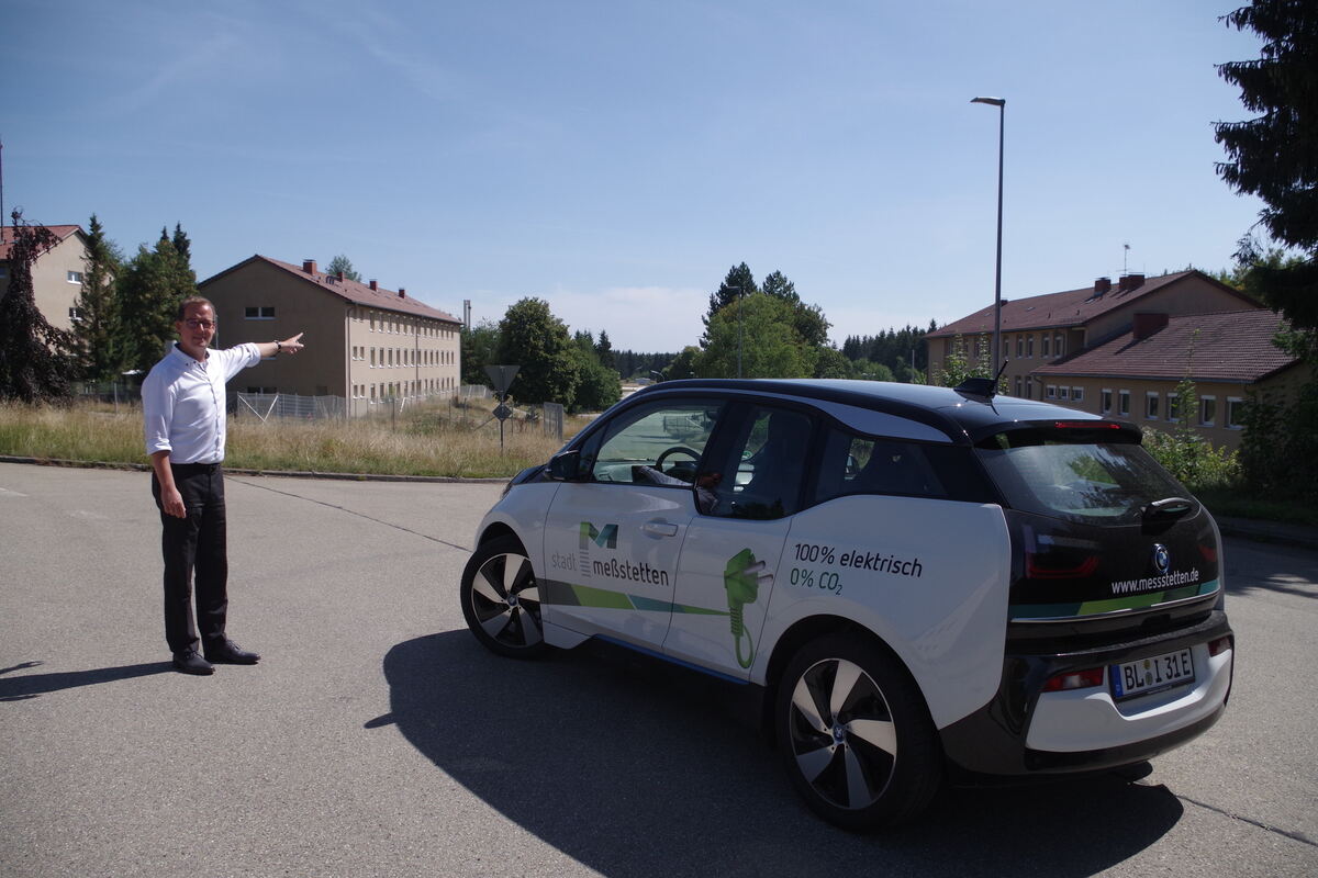 »Da hinten könnte ein Gewerbepark entstehen«. Bürgermeister Frank Schroft zeigt auf das Gelände der Zollernalb-Kaserne. FOTO: GISEL