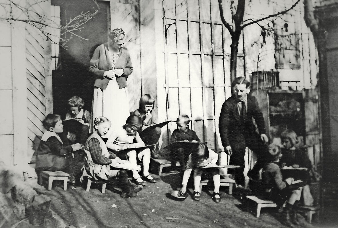 Merz-Schüler in den Anfangsjahren beim Unterricht im Freien.