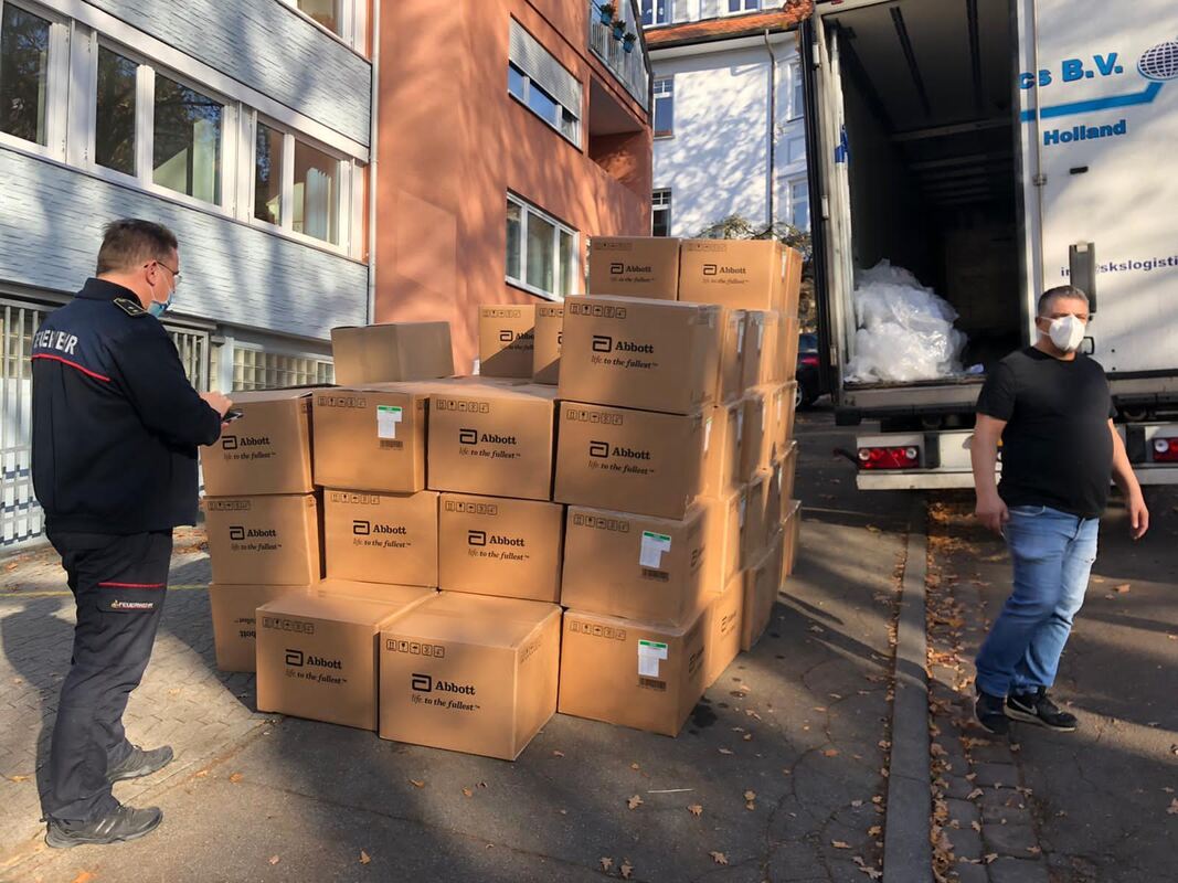 Vor Lisa Federles Haus werden 120 000 Schnelltests abgeladen und gleich weiterverteilt. FOTO: PRIVAT
