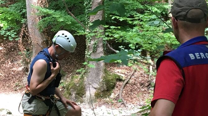 Wenig später rücken zahlreiche Helfer an, darunter die Bergwachten Stuttgart und Lenninger Tal, ein Notarzt aus Owen, ein Rettungswagen aus Bad Urach und ein Streifenwagen. Gemeinsam machen sich die Retter auf den Weg, Mutter und Sohn zu retten. Keine einfache Aufgabe, sagt Wucherer. »Das Gelände ist so steil, dass selbst die Bergwacht dort nur gesichert reingeht«. Außerdem besteht die Gefahr von Steinschlag. Doch am Ende gelingt die Rettung ohne Zwischenfall, Frau und Kind werden abgeseilt und bleiben unverletzt. (GEA)