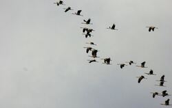 Die Tiere orientieren sich an markanten geografischen Gebilden wie Flüssen und Gebirgen - etwa Donau und Alpen. »Die Großvögel ziehen mit Geschwindigkeiten von 50 bis 70 Stundenkilometern über uns hinweg. Sie fliegen in V-Formation. Ihre abendlichen Trompetenrufe sind an ruhigeren Orten gut zu hören und sorgen mitunter für ein Gänsehauterlebnis«, sagte Nabu-Ornithologe Stefan Bosch laut Mitteilung.