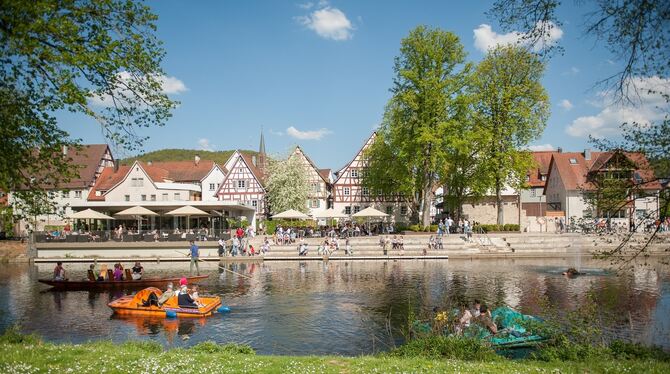 ;alerisch: Stadtpark und Longwy-Platz in Nagold. Die Stadt hofft auf Kurzurlauber aus dem Südwesten.