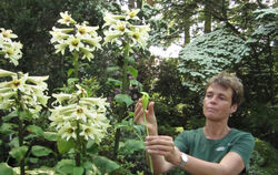 Am Mittwoch war die Titanwurz schon 110 Zentimeter groß, während sie am Montag noch 97 Zentimeter gemessen hatte, wie auf der Website des Botanischen Gartens zu sehen ist. Sie gilt den Angaben nach als größte Blume der Welt. Wenn die Pflanze - deren lateinischer Name Amorphophallus titanum ist - ihre Blütenpracht entfaltet, verströmt sie Aasgeruch.