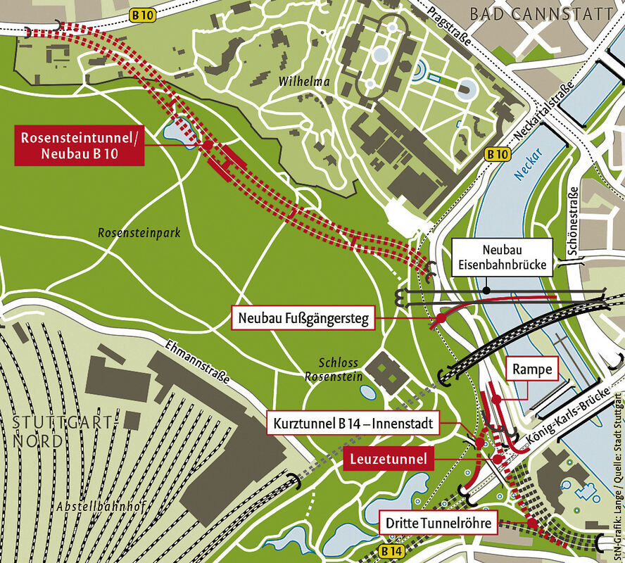 Das Gesamtprojekt Rosenstein-/Leuzetunnel.