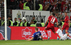 Die Führung der Gäste erzielte Christian Kinsombi (13. Minute). Zuvor hatte dessen älterer Bruder David per Hacke den Ball aufs linke Eck verlängert, Bielefelds Keeper Martin Fraisl konnte nur noch nach vorne abwehren. Alexander Esswein (33.) erhöhte vor 18 300 Zuschauern auf 2:0, ehe Andres Andrade (45.+1) noch vor dem Pausenpfiff der Anschlusstreffer gelang.