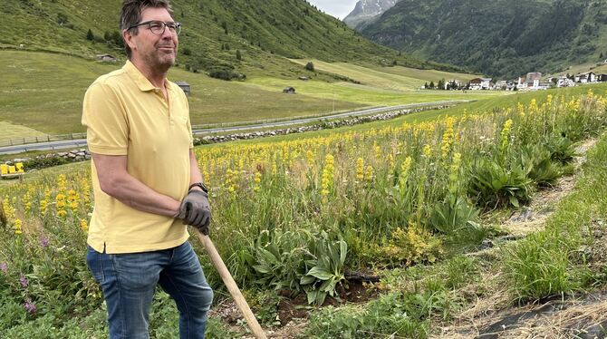Hermann Lorenz in seinem Enzianfeld bei Galtür