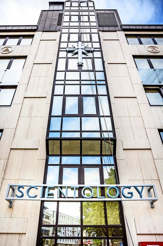 Die neue Scientology-Zentrale in Stuttgart. Unten ein Auszug aus dem Fragebogen für den Persönlichkeitstest. Foto: GEA