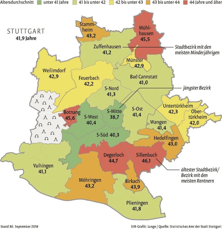 Die Stuttgarter Außenbezirke sind tendenziell älter als Bezirke in der Innenstadt.