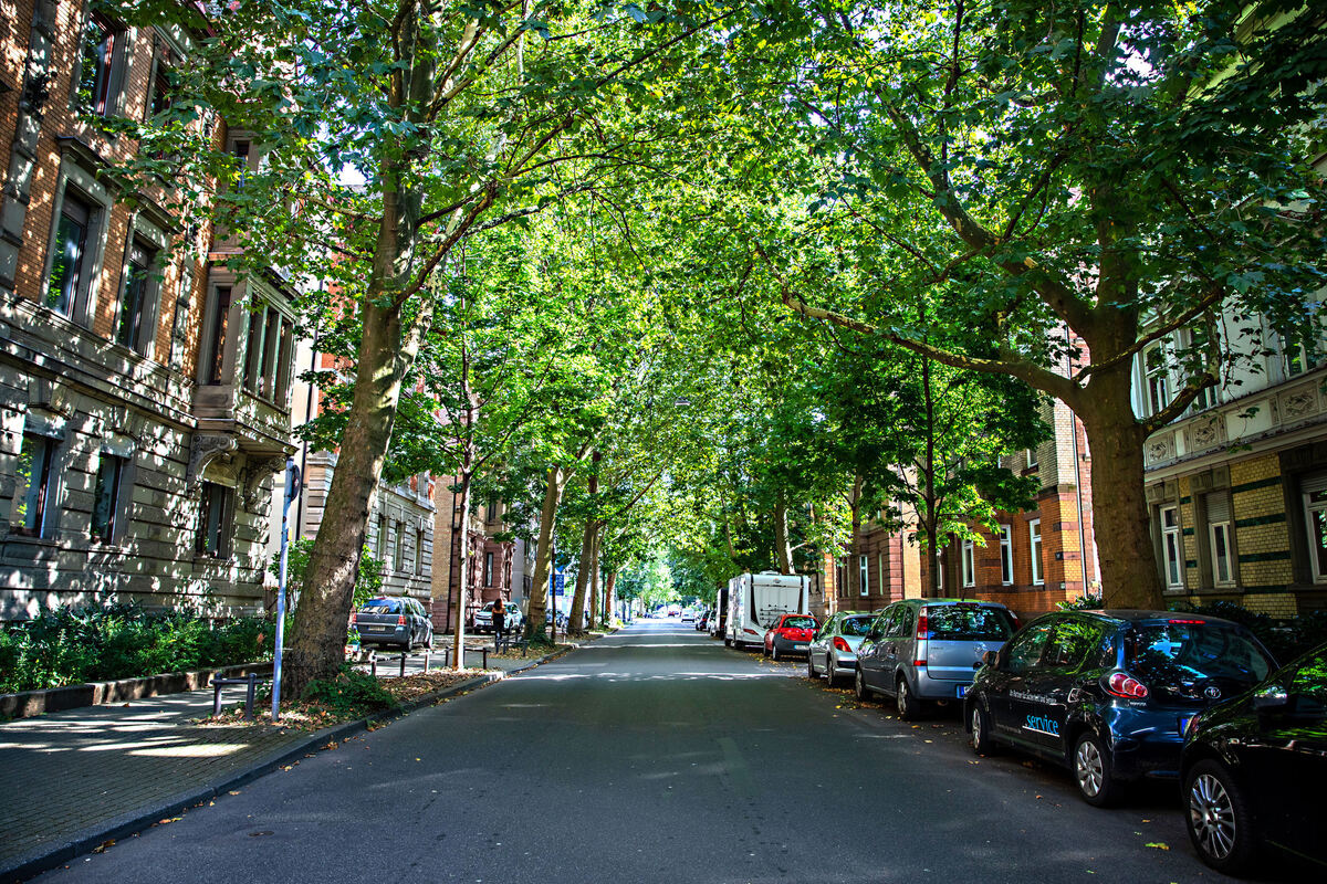 An dieser Straße in Bad Cannstatt sieht man, wie effektiv große Bäume ein Quartier verschatten können.