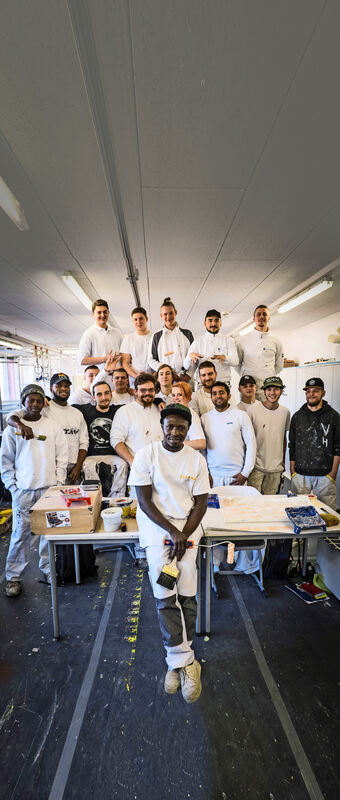Berufsschüler Amadou Fadera mit seiner Klasse Maler- Azubis. FOTO: LG/ZWEYGARTH
