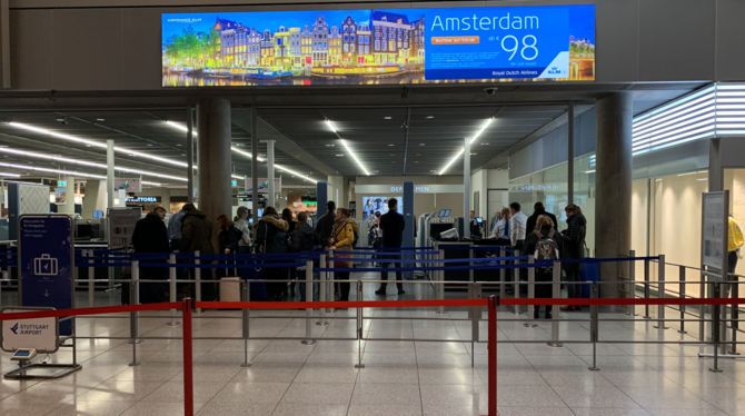STUTTGART. Stillstand am Stuttgarter Flughafen. Mehr als die Hälfte aller abgehenden Flüge fallen Stand 6.30 Uhr aus. Doch es könnten im Laufe des Tages noch mehr werden. Das sei allerdings schwer abschätzbar, sagte die stellvertretende Pressesprecherin des Flughafens Beate Schleicher. Welche Flüge gestrichen werden, entscheiden alleine die Airlines. Auffällig: Während Fluggesellschaften wie Lufthansa, Eurowings oder Swiss fast alle Flüge gecancelt haben, soll bei den Verbindungen in die Türkei alles nach Plan laufen.