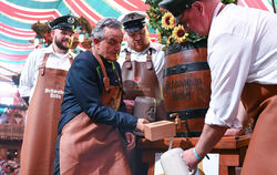 Ein kurzes Zögern, ein dritter Schlag mit dem hölzernen Schlegel, dann ein wuchtiger vierter und das Bier ergießt sich in den Maßkrug. Stuttgarts Oberbürgermeister Frank Nopper - im vergangenen Jahr bei seiner Premiere am Fass noch nach nur zwei Hieben erfolgreich - hat mit dem traditionellen Fassanstich am Freitag das 176. Cannstatter Volksfest eröffnet, das zweitgrößte Volksfest in Deutschland nach dem Oktoberfest. Oder wie es Nopper fern jeder schwäbischen Zurückhaltung formuliert: das »schönste, stimmungsvollste und damit aus meiner Sicht allerschönste Volksfest in Deutschland, Europa und der Welt«.