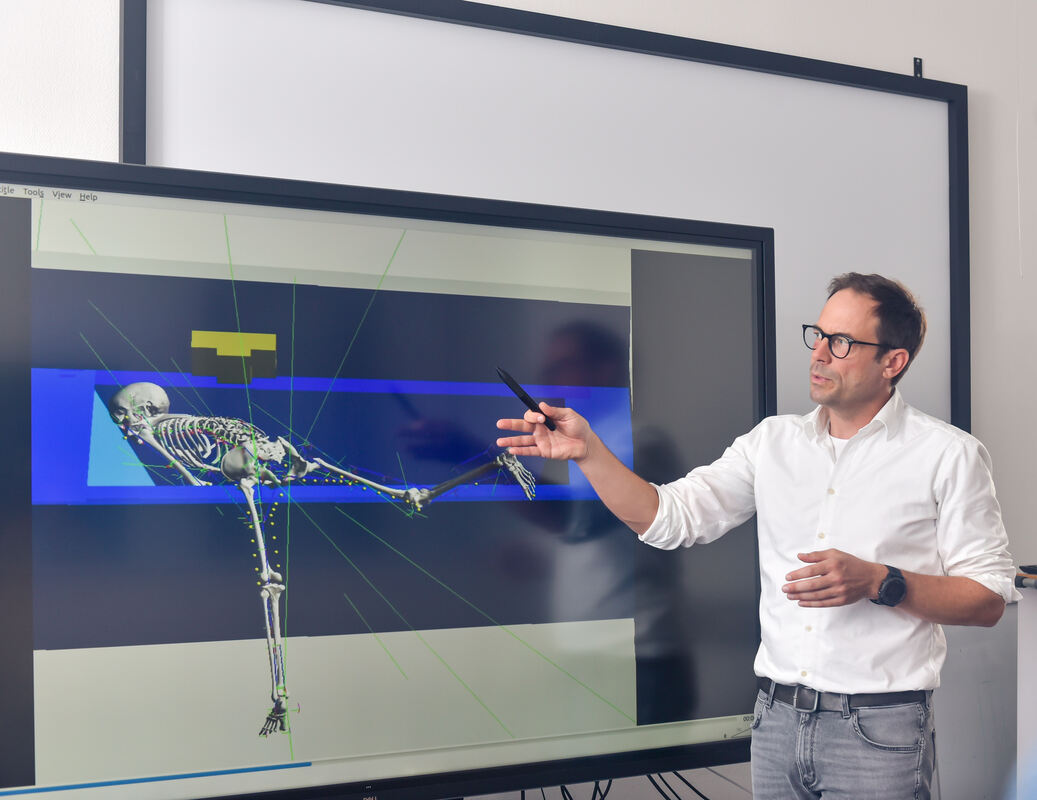 Mord oder Unfall? Professor Syn Schmitt von der Universität Stuttgart rekonstruiert den tödlichen Sturz von Lieselotte Kortüm in die Badewanne mittels Computersimulation. FOTO: KOVALENKO/UNIVERSITÄT STUTTGART