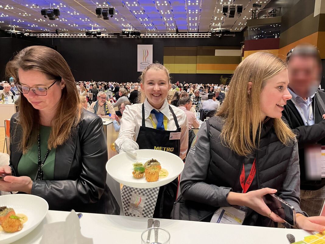 Berufsschülerin Nele serviert im Kongresszentrum der Landesmesse die Vorspeise vom Team Malaysia