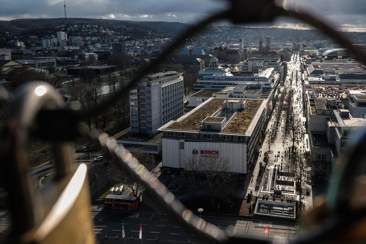 Der Eingang zur Königstraße vom Bahnhofsturm aus gesehen: Die LBBW will das Areal zum Park hin völlig neu gestalten. FOTO: LG