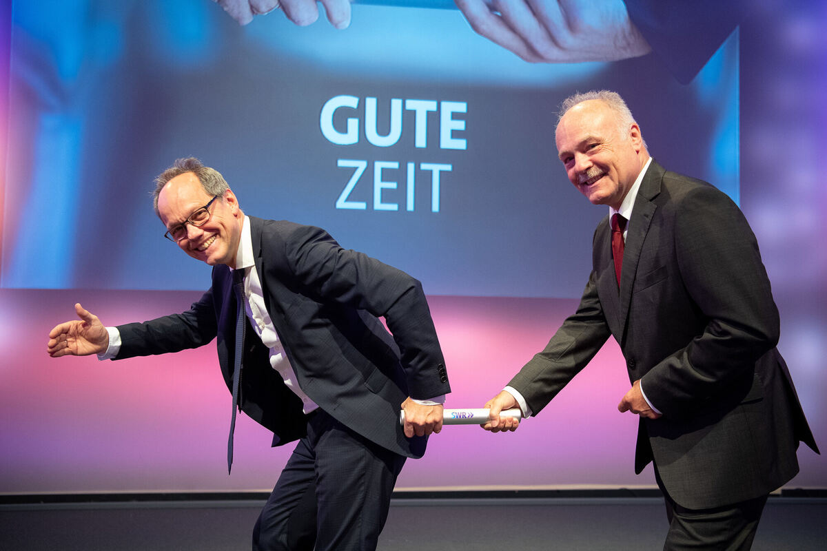 Staffelübergabe im September 2019: SWR-Intendant Kai Gniffke (links) und Vorgänger Peter Boudgoust. Foto: dpa