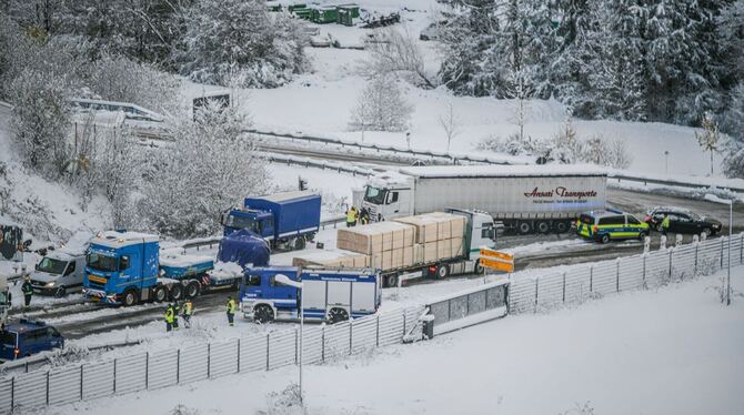 Die Räumdienste kamen laut Polizei nicht mehr durch und blieben selbst liegen. Die Feuerwehr habe teilweise Fahrzeuge der Autobahnmeisterei befreien müssen. Einige Menschen verließen ihre Fahrzeuge, andere blieben dort und mussten versorgt werden. Zwar hörte es in der Nacht zunächst auf zu schneien, die Fahrbahn war allerdings immer noch schneebedeckt. Die Schneefälle hätten leider pünktlich zum Feierabendverkehr für Behinderungen gesorgt, sagte ein Polizeisprecher in Freiburg. Der Norden Baden-Württembergs dagegen blieb von den Schneemassen verschont.