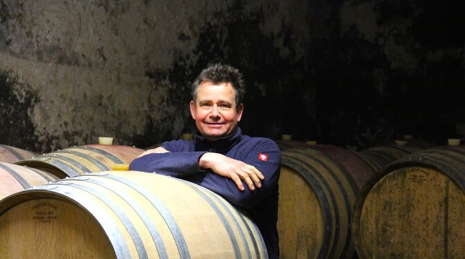 Seit 800 Jahren existiert die Spitalkellerei Konstanz. Einer der beiden Pächter ist Stefan Düringer, hier im Kellergewölbe. FOTOS: FRICKER
