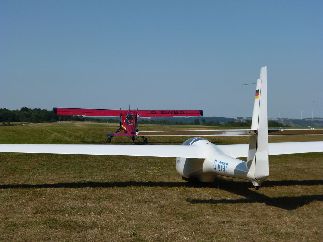 Beim Flugzeugschlepp steht ein Motorflugzeug vor dem Segler, und zieht das antriebslose Fluggerät in die Luft. »Dazu nimmt man ein leistungsstarkes Motorflugzeug, an dem ein 40 Meter langes Kunststoffseil hängt, das am Segler befestigt wird«, beschreibt Nierkamp das Verfahren im Detail. Gestartet wird gemeinsam, »beide heben mehr oder weniger gleichzeitig bei etwa 100 bis 120 Stundenkilometern ab«. Der so genannte F-Schlepp ist teurer als ein Windenstart, hat aber manche Vorzüge.