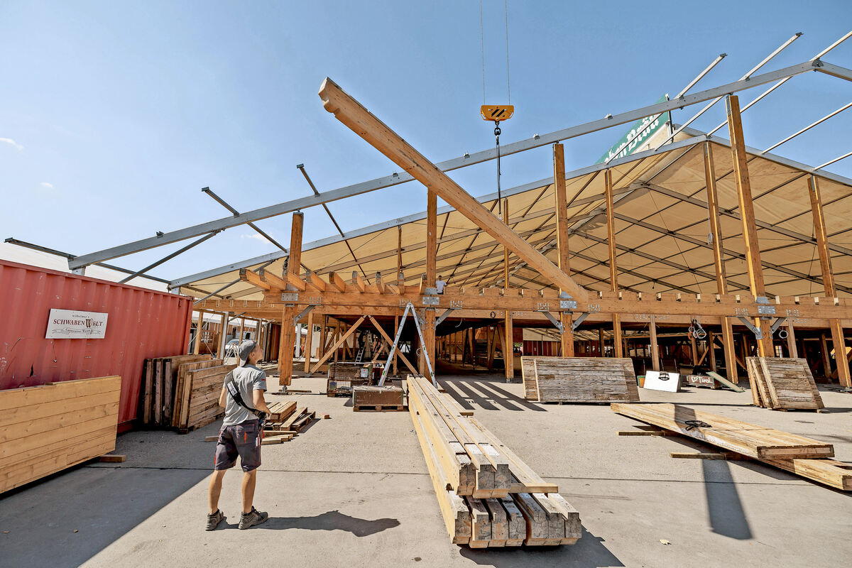 Der Aufbau der Zelte läuft auf Hochtouren. FOTO: LG/RETTIG