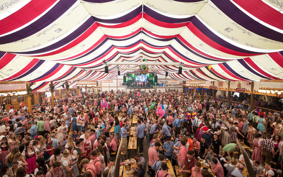 Ausgelassene Stimmung im Festzelt auf dem Frühlingsfest auf dem Cannstatter Wasen. FOTO: SCHULDT/DPA