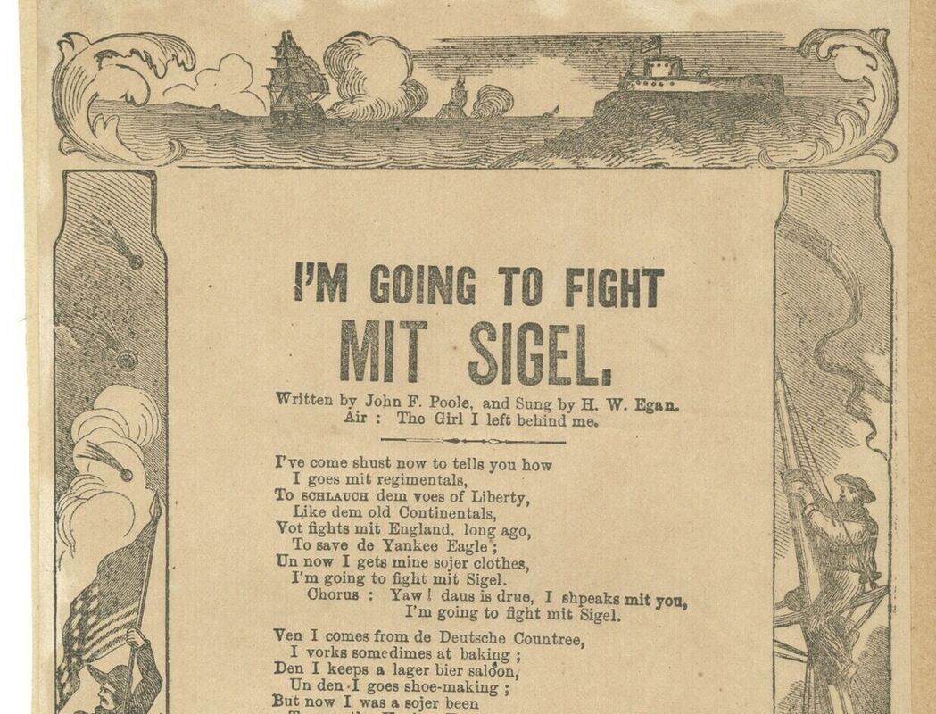 Liedblatt mit dem denglischen »I’m going to fight mit Sigel«.