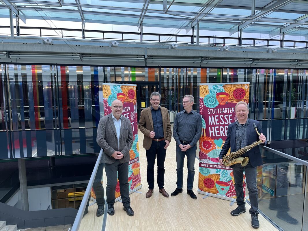Vorfreude auf die Brawo (von links): Heiko Schulze vom Blasmusikverband Baden-Württemberg, Messechef Stefan Lohnert, Manager Hans-Peter Zachary und Musiker Andreas Maile (beide SWR-Bigband).