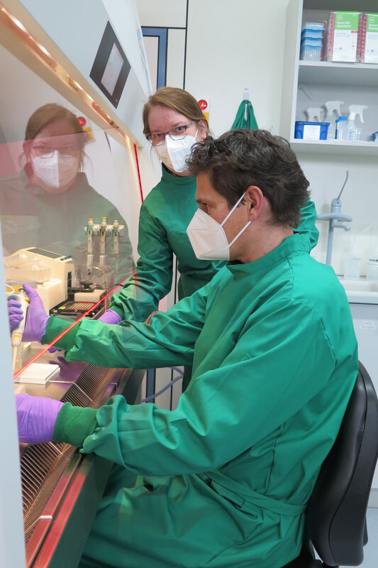 Immun oder nicht? Nicole Schneiderhan-Marra und Ulrich Rothbauer untersuchen am NMI in Reutlingen eine Blutprobe auf Antikörper gegen das Coronavirus. Archivbild: Steinrücken